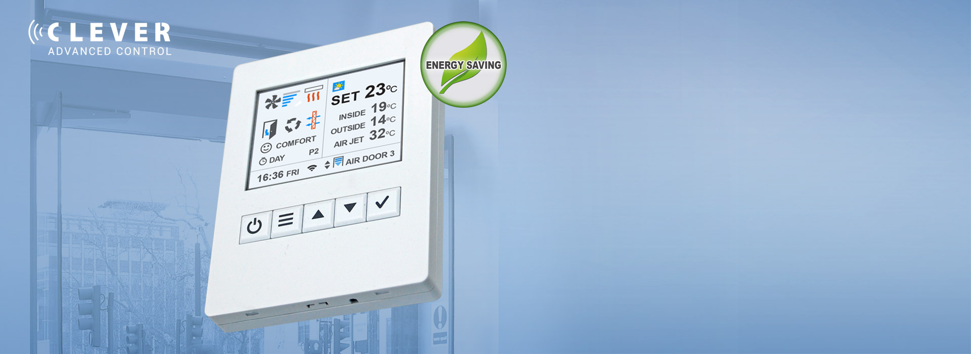 Tark proaktiivne reguleerimineCLEVER Juhtpult optimeerib ventileerimist ja kütmist, et luua efektiivset ja optimaalset õhubarjääri ja tagada head kliimakaitset